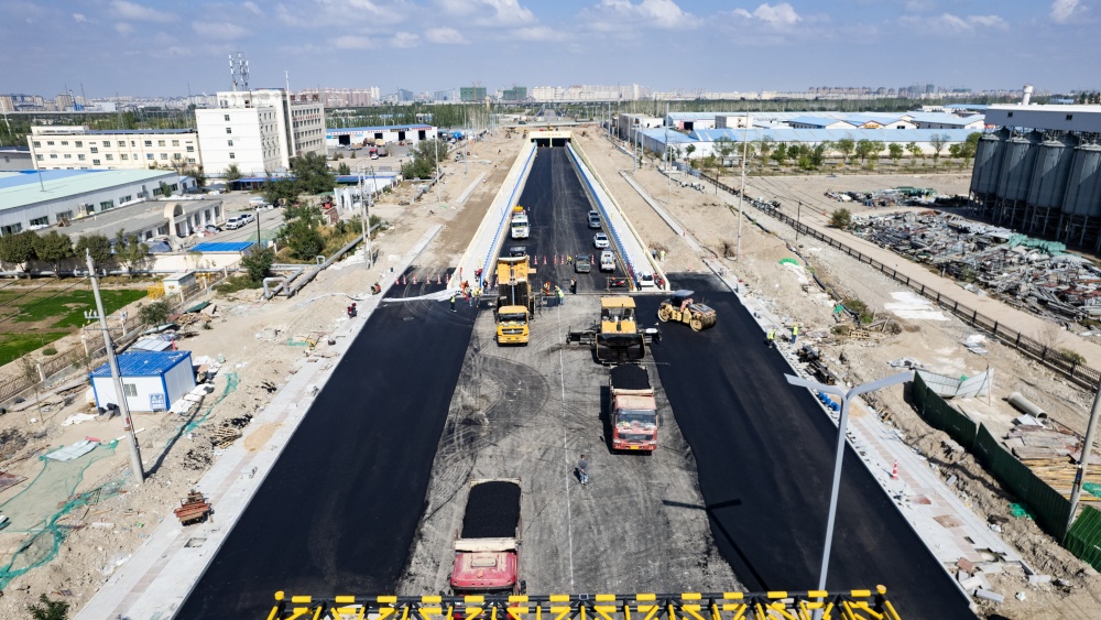 在項目建設過程中,生態(tài)公司全面推行項目精細化管理,并貫穿融入項目管理的全周期全過程。由于道路從北向南依次下穿蘭新高鐵、肅州區(qū)四支干渠、G30連霍高速、國防電纜、永興路,而且項目兩側緊鄰酒嘉國際物流園,車流量、人流量較大,地質情況復雜,安全風險高。對此,項目部始終將安全管理放在首位,緊緊錨定“雙零”安全目標,通過加強安全教育培訓,完善安全防護措施,落實安全技術交底制度,嚴格開展安全巡查等方式,構建全方位安全防護體系。積極聯(lián)合公安、高速相關執(zhí)法部門做好交通疏導和業(yè)務協(xié)調,詳細制定交通疏導方案,提前做好交通疏導,專人指揮,確保施工期間交通安全,不影響連霍高速的正常通行,及附近居民的日常生活,有效保證了施工進度和安全穩(wěn)定。項目部高度重視質量管理,由分管領導質量檢查小組,對每一道施工工序進行現(xiàn)場質量檢查、記錄,嚴格落實“樣板引路”制度。在箱涵澆筑、瀝青道路鋪筑等各重點環(huán)節(jié),嚴格進行施工前實驗,對相關數(shù)據(jù)進行采集、分析,通過不斷總結、調整、優(yōu)化,確保各項質量數(shù)據(jù)符合設計標準,為順利通過工程驗收打下基礎。