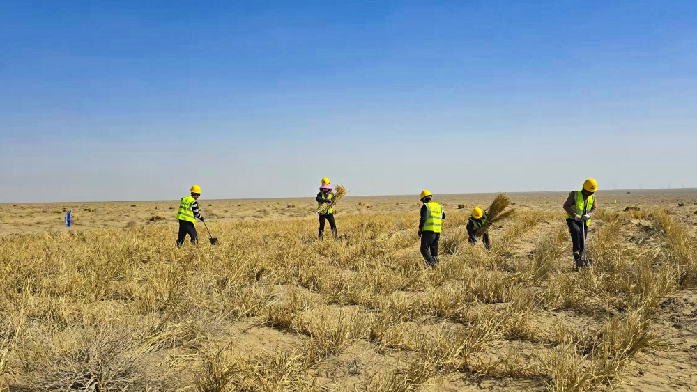 自今年3月,項目開工以來,施工人員克服戈壁風沙大、天氣變化無常等種種不利因素,堅持“高標準、強執(zhí)行、抓細節(jié)、創(chuàng)精品”原則,嚴格按照施工方案組織施工,精準把控草方格間距、大小、挖溝的深度、稻草攤鋪的厚度等各項技術(shù)要點,通過責任分區(qū)、定人定崗,實現(xiàn)現(xiàn)場精細管控、精心施工,保障施工有序推進。同時,項目部建立“日碰頭、周調(diào)度、月總結(jié)”機制,及時梳理問題、分解任務,確保進度按計劃推進。嚴格落實安全生產(chǎn)責任制,堅持每日班前開展安全教育,常態(tài)化開展隱患排查整治,將風險消除在萌芽階段,筑牢安全防線。