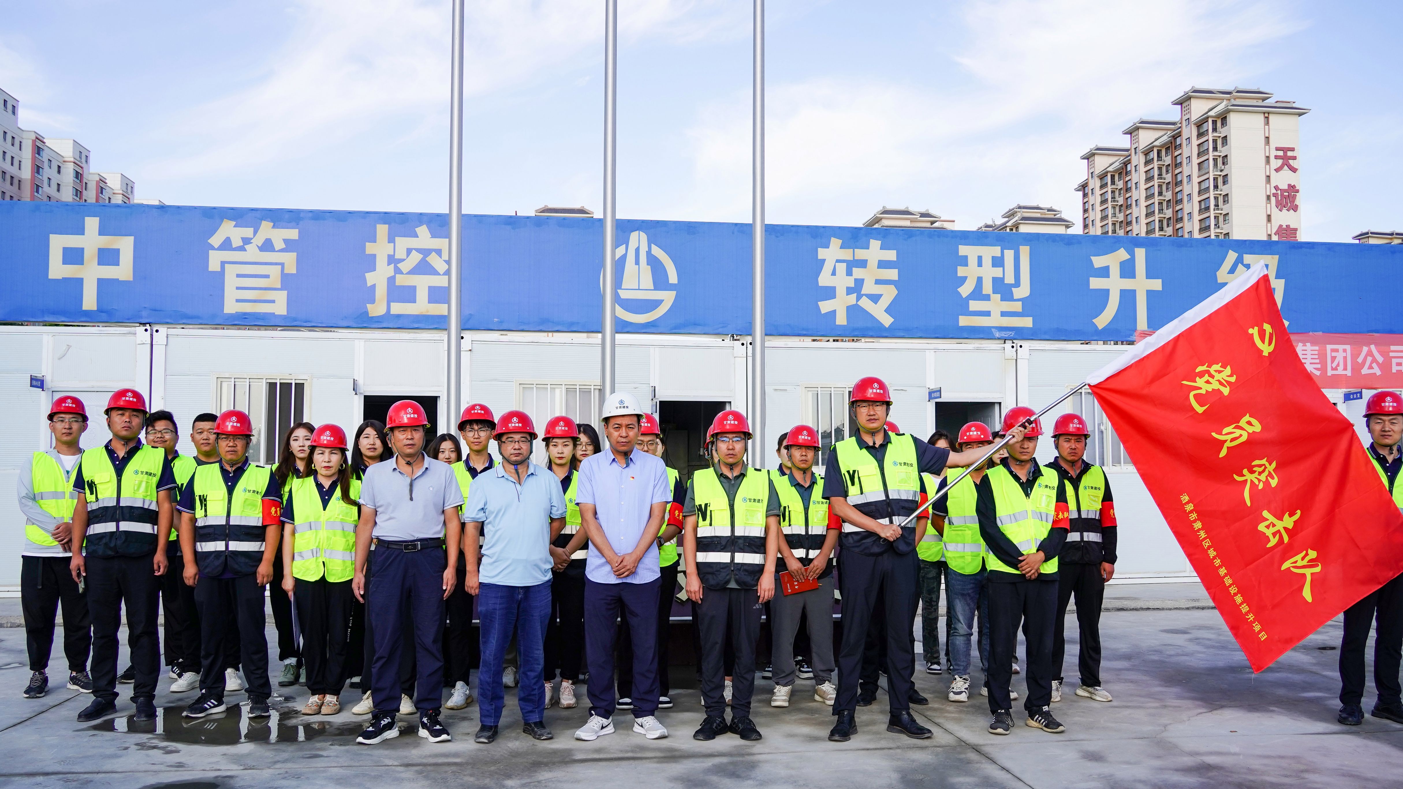 百年大黨風華正茂,一往無前歷久彌堅。為深入學習貫徹習近平新時代中國特色社會主義思想和黨的二十大精神,推動“三抓三促”行動走深走實,團結(jié)引領(lǐng)生態(tài)公司酒泉地區(qū)廣大黨員干部職工在酒泉市肅州區(qū)城市基礎(chǔ)設(shè)施提升項目建設(shè)工作中彰顯生力軍和突擊隊作用,確保各子項目如期建成,助力酒泉市經(jīng)濟社會發(fā)展,為生態(tài)公司高質(zhì)量發(fā)展做出應(yīng)有的貢獻。8月24日,潤澤川公司黨支部在酒泉市肅州區(qū)城市基礎(chǔ)設(shè)施提升項目-雄關(guān)路道路及管網(wǎng)建設(shè)工程項目部舉行酒泉市肅州區(qū)城市基礎(chǔ)設(shè)施提升項目“黨員突擊隊”授旗儀式暨“大干30天,決勝三季度”動員會。