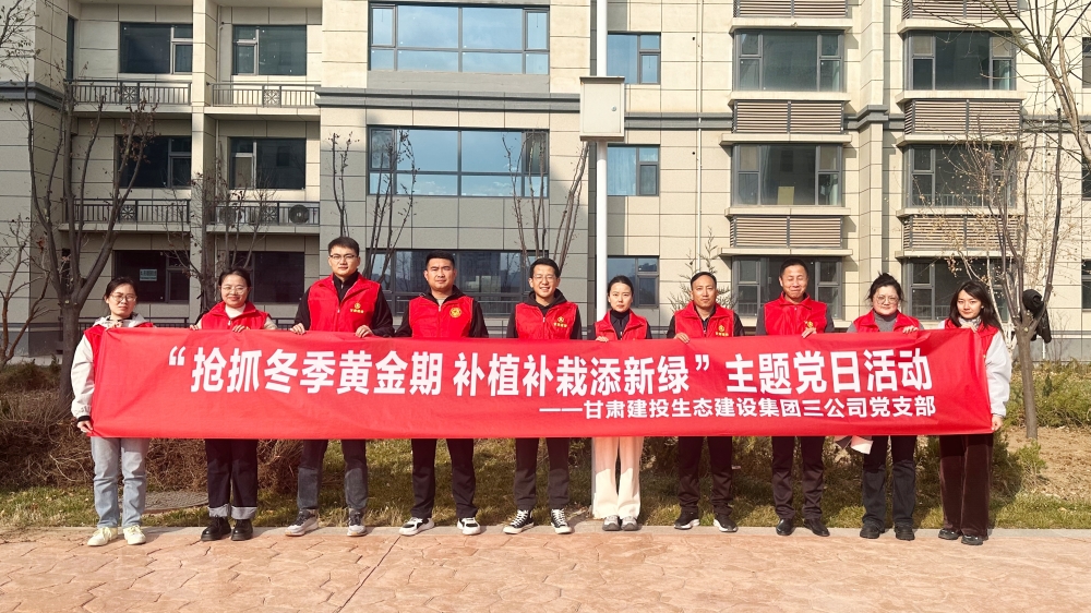 為進一步踐行習近平生態(tài)文明思想,搶抓冬季補種黃金期。近日,生態(tài)三公司黨支部組織全體黨員、團員青年在蘭州新區(qū)瑞嶺名郡項目開展“搶抓冬季黃金期 補植補栽添新綠”主題黨日活動,牢固樹立“增綠就是增優(yōu)勢,植樹就是植未來”生態(tài)理念。