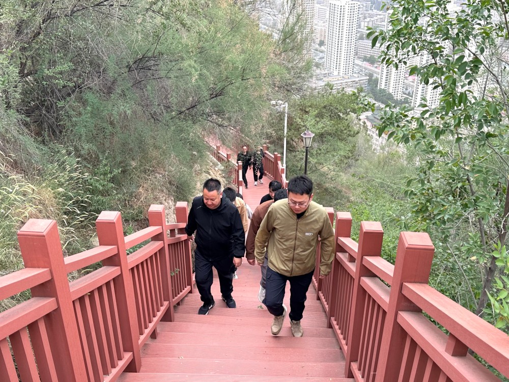 健步同行暢享活力。當(dāng)日上午,微風(fēng)輕拂,隨著一聲“出發(fā)”號令,二十余名職工從健身步道起點沿著蜿蜒的山路邁著輕快的步伐健步前行。山間空氣清新,彌漫著泥土與草木的芬芳,盡管沒有陽光的照耀,蘭山的景色卻別有一番韻味,層巒疊嶂在云霧中若隱若現(xiàn),宛如一幅水墨畫卷。登山途中,盡管陰天的涼意不時襲來,但徒步帶來的熱情與活力驅(qū)散了寒意,大家相互鼓勵、相互扶持,或結(jié)伴而行,暢談生活趣事;或駐足欣賞美景,用手機(jī)記錄下難忘瞬間。