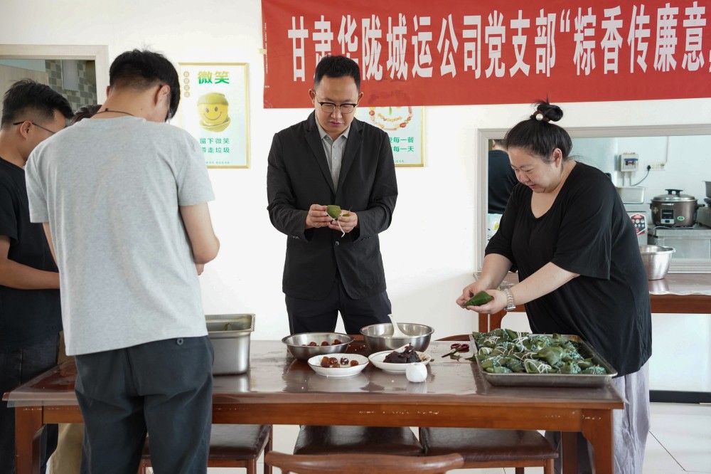 為弘揚中華優(yōu)秀傳統(tǒng)文化,深化新時代廉潔文化建設(shè),5月29日,在端午佳節(jié)來臨前夕,華隴城運公司黨支部創(chuàng)新形式,將傳統(tǒng)民俗與廉潔教育相結(jié)合,組織開展了“傳承端午文化 弘揚廉潔清風(fēng)”主題活動,通過“學(xué)理論、包白粽、話廉潔”等特色環(huán)節(jié),引導(dǎo)干部職工感受傳統(tǒng)文化魅力,筑牢廉潔自律思想防線。